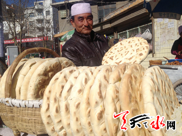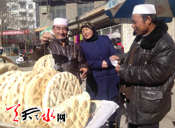 “老王的锅盔卖了几十年了,老买主多得很,给他把钱都攒下、楼都修起了!”12月8日,几位居民在张家川县张家川镇街头边掏钱买锅盔边说,一旁称完秤的王贵生则乐呵呵地收起刚挣来的钱。