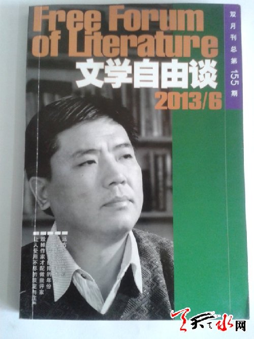 天天天水网讯 【记者 胡晓宜】天水市作家阎小鹏,因近年来在当代文学创作批评方面的成绩和影响,被《文学自由谈》杂志选为该刊2013年第六期封面人物。