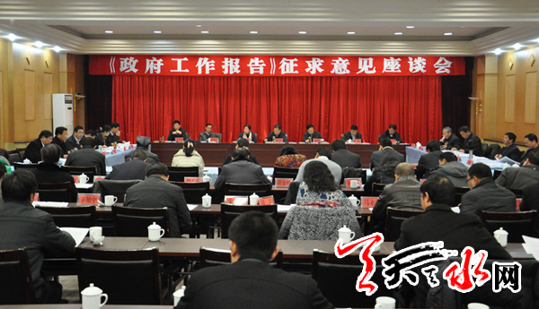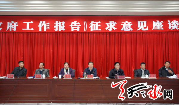 天天天水网讯【记者 马放】12月20日上午,天水市人大常委会召开《政府工作报告》》(征求意见稿)征求意见座谈会。天水市人大常委会主任柴金祥,中共天水市委副书记代市长杨维俊出席座谈会,天水市人大常委会副主任萧菡、安永、黄孝荣、秘书长张仲康及各位委员,驻秦州、麦积两区的30名市人大代表,天水市人大机关部门负责人参加了座谈会,座谈会由天水市人大常委会副主任王子生主持。
