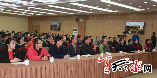 天天天水网讯【记者 童强】12月24日,由兰州铁路局电视台、武山县委宣传部和兰州铁路公安局联合拍摄的电视电影《铁路警察和留守儿童的故事》首映式在武山县召开。市委常委、宣传部长彭鸿嘉参加首映式。