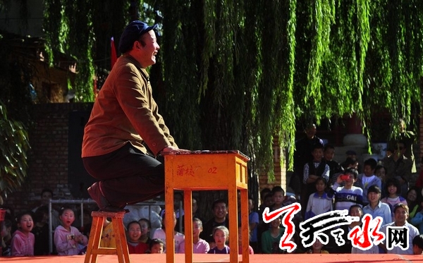 (天水喜剧演员王海生在2014中国民间春晚甘肃赛区选拔赛上表演《村长开会》)