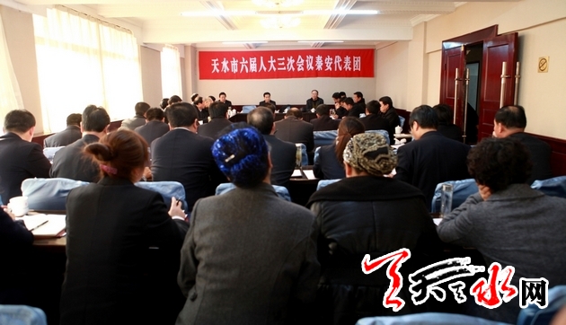 天天天水网讯【记者 马放】12月28日至29日,秦安代表团的代表们认真审议了《政府工作报告》,审议中代表们围绕报告内容,结合各自实际,踊跃发言,积极讨论,共谋发展,会议室里气氛热烈。
