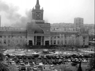伏尔加格勒火车站发生爆炸后冒出浓烟。