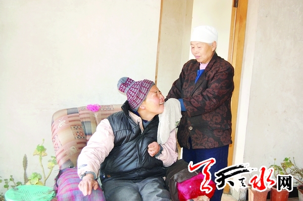智障的马利红今年48岁,记者在与任月英老人拉家常时发现,坐在一旁的她心里好像什么都明白似的,当记者问她:“你这个妈妈好不好?”,她马上绽开灿烂的笑容并且手舞足蹈,好像在说:“世上只有妈妈好!”