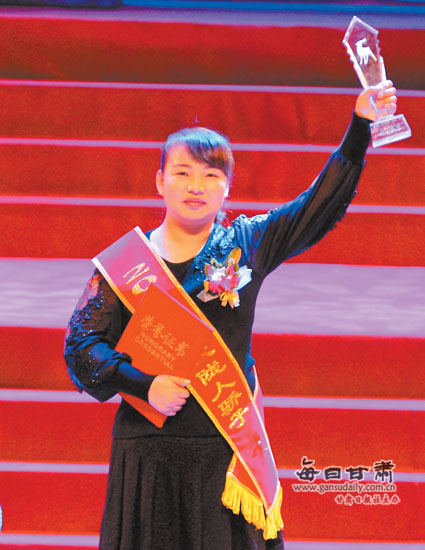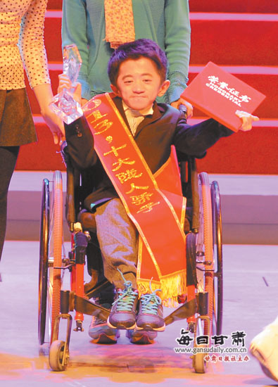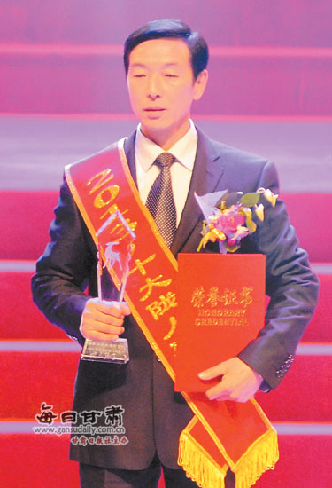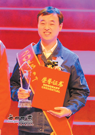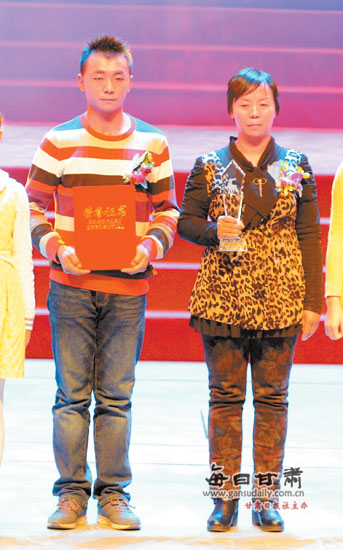 夏宝云的母亲和弟弟代为领奖。 2013’十大陇人骄子颁奖现场。本报首席记者裴强摄