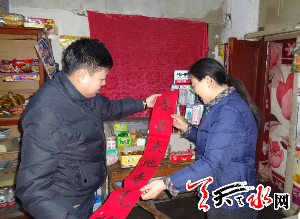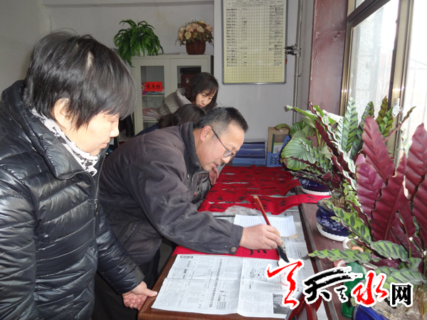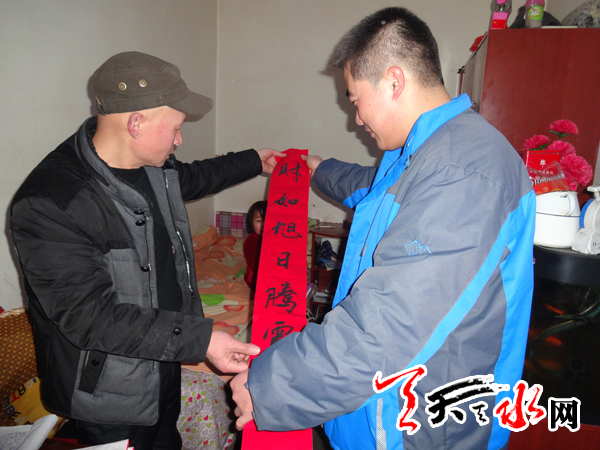 天天天水网讯【记者蔚军平】1月20日,秦州区东关街道办仁和里社区组织辖区擅长书法的党员,为居民义务书写春联。社区工作人员上门将这些对联送到辖区部分居民家中,向他们致以新春的问候和祝福。