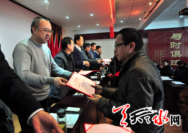 会上表彰了2013年先进集体及先进个人,并与各部门负责人签订了2014年目标责任书。