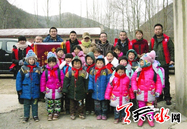 队长小裴今年35岁,给人的第一印象是干练,他做公益已经有5年时间,2013年初和几个志同道合的朋友开通了“天水志愿者爱心联盟”QQ群,在献爱心这件事上他毫不犹豫,第一次去秦州区籍口镇寨柯小学探路,山路不好走,不是石头就是坑,他自己开车载着3名志愿者就进山了,由于车的底盘太低,磕磕碰碰,来回修车费就花了3000多元。他笑着说:“就是可惜了,这钱要是捐给学生就好了。”近一年里,志愿者们十几次前往这所全部是留守儿童的学校,在他们的帮扶下,教室的墙变白了,还贴上了城里孩子才有的英语学习海报,桌椅变新了,电铃、玻璃装上了,孩子们的字典、文具、书包、体育用品也陆续送来了。每到逢年过节,志愿者们就带着慰问金慰问学校的民办教师王老师,总觉得他靠500多元的工资生活不容易。