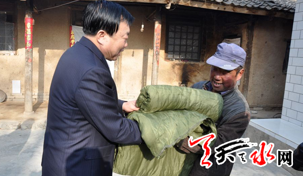天天天水网讯(记者 令文慧)1月27日,天水市副市长雷鸣深入“联村联户、为民富民”行动联系点秦州区藉口镇杜家山村,看望慰问联系户,为他们送去了大米、棉被等慰问品,并向他们致以新春的问候和祝福。