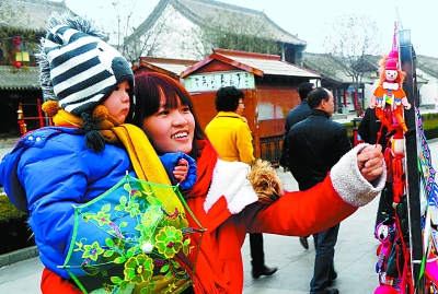 市民在天水市伏羲庙广场购买春节饰品。本报记者 李小龙
