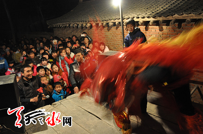 春节期间,在天水市秦州区秦岭乡虎林村,由村民们自编自导自演的马年联欢晚会,每晚都有新亮点,歌舞、秦腔轮番登场,舞狮、杂耍悉数亮相。简单通俗风趣的节目,非常具有农村气息,更有新年的味道。亲切的乡音唱出了村民们每个人心中的中国梦,欢快的舞蹈跳出了大家奔小康的美好向往,每一个节目上演,黑压压的人群里都会爆发出热烈而持久的掌声和欢闹声。