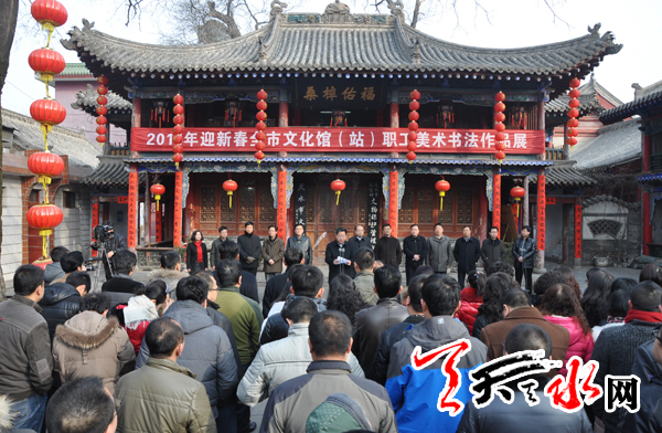 天天天水网讯【记者 马放】2月7日,2014年迎新春全市文化馆(站)职工美术书法作品展在市文化馆开展,本次作品展是天水市春节系列文化活动之一,从正月初八到正月十二为天水市书画爱好者奉献上一道丰盛的文化大餐。