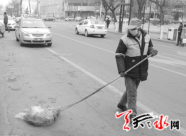 2月6日下午,记者来到秦州区新华路采访了正在工作的环卫工人牛彩珍。此时天空中正飘着小雪花,路边站台上等车的人们都瑟缩着身子,不时跺着脚。在他们身边,环卫工人牛彩珍正在认真地清扫着路面上的垃圾,一点点地向前方挪动步子。