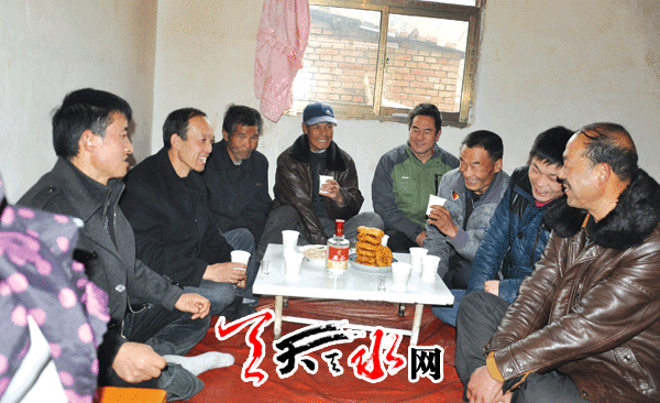 正月初五,天水气温突降,天上飘起雪花,冻得人伸不开手,但在娘娘坝镇马家坝大庄自然村村民钱真虎的家里,却充满了欢声笑语。同村的几位“客人”坐在暖烘烘的热炕上,围着炕桌,桌上简单地摆着酒、水、油饼、瓜子等。