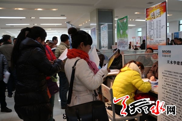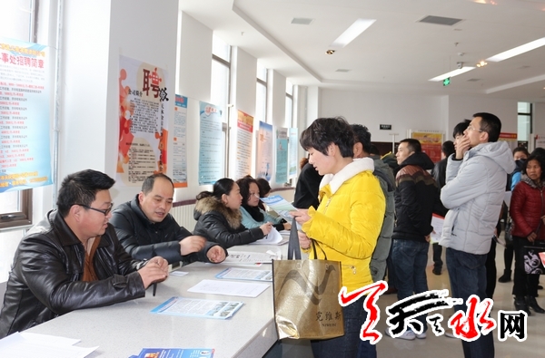 天天天水网讯(记者 令文慧)2月11日上午,虽然是农历正月十二,过年的氛围正浓,而在天水市人力资源市场,2014年我市春季大型人力资源招聘洽谈会现场却人头攒动,各类求职人员与用人单位面对面洽谈,寻找自己合适的岗位和人才。