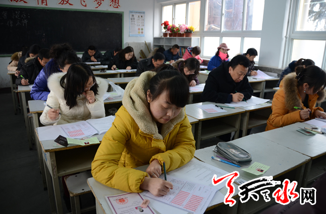 天天天水网讯(记者 杨璟)2月18日上午,全市新闻采编人员岗位考试在天水逸夫实验中学开考。这次培训考试是国家于2005年施行《新闻记者证管理办法》以来,以2014年全国统一换发新版新闻记者证为契机,首次通过考试的方式检验新闻采编人员岗位培训的效果。天水日报、天水晚报,市县区广播电台、电视台等新闻单位330名新闻采编人员参加了考试。甘肃省新闻出版广电局巡视组成员及天水市副市长张建杰巡视了考场。