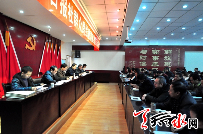 会议由天水日报社党委副书记、副社长项顶主持。市委第七督导组全体成员,报社全体党员干部参加了会议。