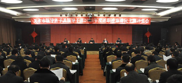 本报讯【记者 杨璟】2月25日下午,我市领导班子及领导干部2013年度述职述廉暨民主测评大会在天水宾馆召开。由省委常委、常务副省长罗笑虎任组长的省委第四考核组对我市领导班子及领导干部2013年度政绩暨落实党风廉政建设责任制、推进惩防体系建设进行检查考核。