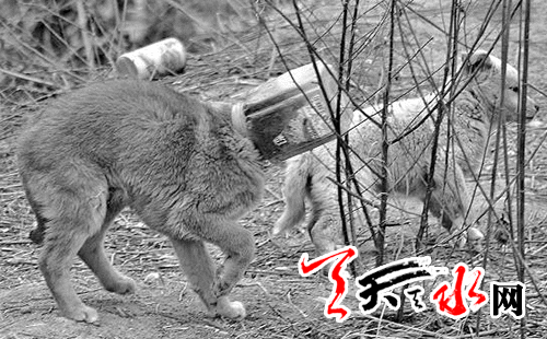 然而几天前,一只小狗因为贪吃将头伸进一个塑料食品罐中拔不出来,因为吃不上喝不成,加之罐内空气憋闷,几天来活蹦乱跳的小狗无力地卧在地上,眼看着生命岌岌可危,狗妈妈着急但也没有办法,只能不停地在小狗跟前抚慰。