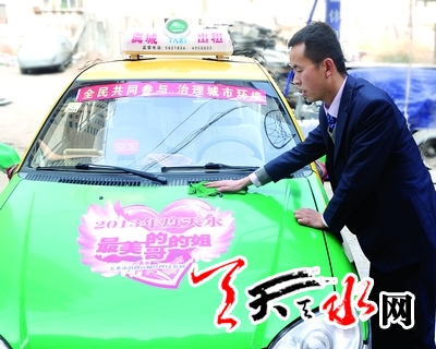 2月25日,在甘谷县城,甘ET0768的出租车不时成为人们关注的“焦点”,车上鲜红的“2013年度天水最美的哥的姐”的标志引人注目,驾驶员马俊麟和平时一样,身穿工作服,态度温和、待人热情。