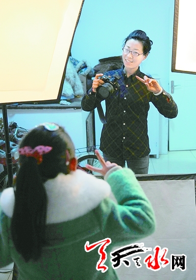 “我家儿子的这张拍得真帅气”,“快看我家的这张合影,每个人都拍的很精神”……几个顾客拿着刚冲洗出来的照片正兴高采烈地评论着,而此刻被顾客包围的摄影师霍玉霞,正埋头专注地为顾客裁剪照片。这是记者走进麦积区社棠天地摄影艺术中心时看到的第一幕。