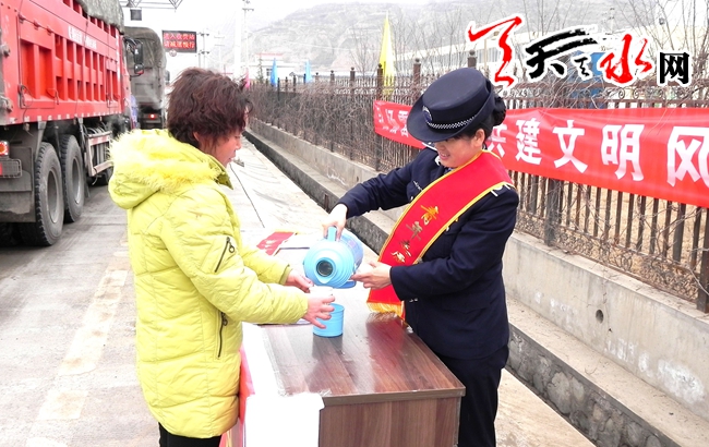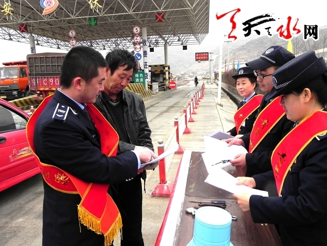 天天天水网讯(通讯员 胡明全)从3月1日起,天水公路管理局莲叶收费所在收费广场开展了为期20天的“弘扬雷锋精神,践行社会主义核心价值观”为主题的志愿者服务活动。该所印制了宣传单,向过往司乘人员宣传社会主义核心价值观内容,免费为驾驶员提供行路指南、修车工具、应急药品和开水等免费延伸服务,让雷锋精神在公路窗口单位生根开花。