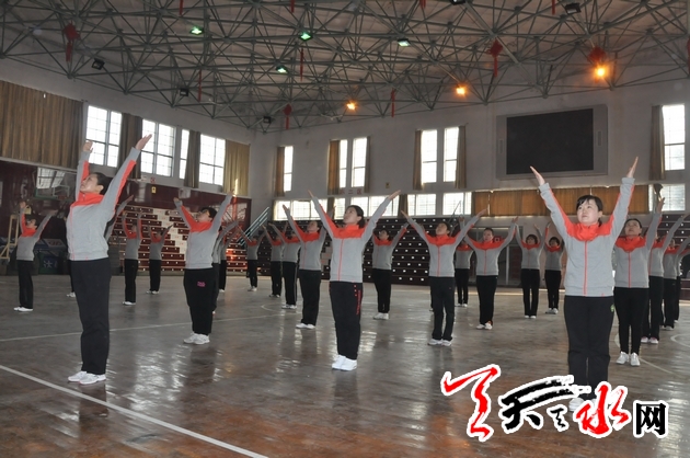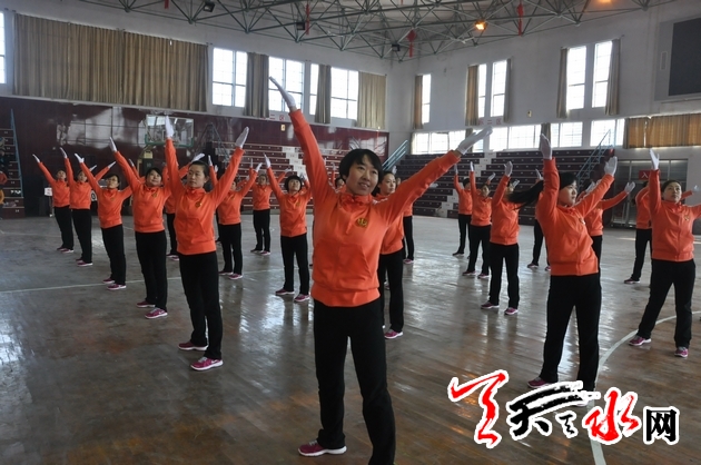 为了庆祝“三八”国际劳动妇女节104周年,3月6日上午,由天水市妇女联合会、市体育局联合主办的女职工第九套广播体操比赛在市体育训练馆举行。活动当天,市直单位的6支代表队近200余名选手参加了比赛。记者 吕薇 摄