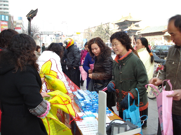 3月7日,社区在民主东路开展“关怀关爱流动人口”为主题的宣传活动,本次活动主要以宣传计生政策为主,向广大市民群众免费发放计划生育宣传资料200份,宣传袋200个,围裙100个,避孕药具400多盒。协会成员并对辖区商铺的流动人口送宣传手册上门。此次活动受到过往群众的关注和好评,让过往群众和育龄妇女切身感受到计生政策为大家,关怀关爱送到你我她。