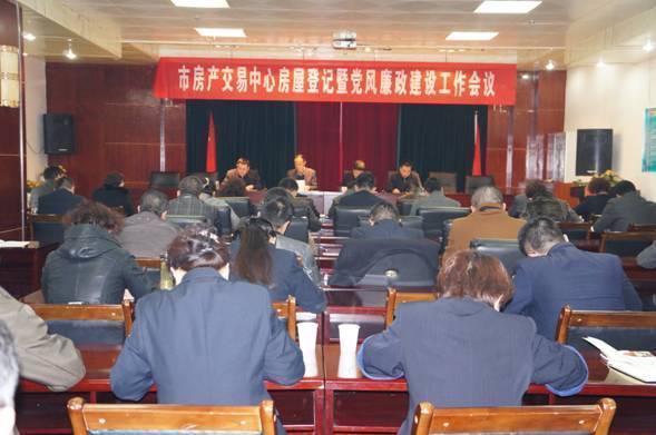 天天天水网讯(通讯员王天辉)2014年3月9日上午,天水市房地产产权交易管理中心召开房屋登记暨党风廉政建设工作会议。会议回顾总结了中心2013年工作,表彰了2013年度先进集体及先进工作者,安排部署了2014年各项工作,中心分管领导与各科室负责人签订了目标责任书。市房地产管理局局长彭德祥出席会议并做重要讲话。会议由中心副主任谢晓睿主持召开。