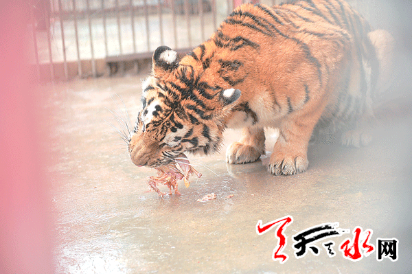 打扫完卫生后,紧接着的工作就是给动物喂食。对于食肉动物来说,比如老虎、狮子主要吃鸡肉和牛肉,余师傅一边清洗着食物一边说:“冬天食肉动物最怕的就是把带有冰的食物吃到肚子里,这样动物胃受不了,所以他必须对食物清洗多次,最后还要用开水再烫一次,不仅冰块会化掉同时起到对肉消毒的作用,这样才放心投喂。”