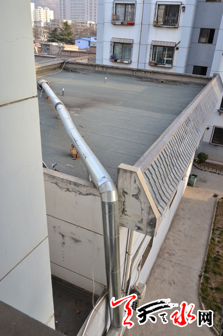 记者随后来到负责该小区物业服务的聚宝物业公司。负责人张主任告诉记者,以前,这家川菜馆的排油烟管道从一楼后窗伸出来后只通到了房顶,距离6号楼住户的窗户比较近,尤其是二楼。但这家川菜馆不属于小区物业管辖范围,他们也没有权利要求店主改造油烟管道,控制营业时间。但由于小区内住户对川菜馆噪音油烟的反映比较强烈,所以在去年12月初,物业公司与川菜馆交涉,店主于是将原有的排烟管道加长并沿房顶延伸,排烟口设置在了川菜馆屋顶的前沿,距离住户的窗户有一定的距离,但油烟还是会随风到处飘。