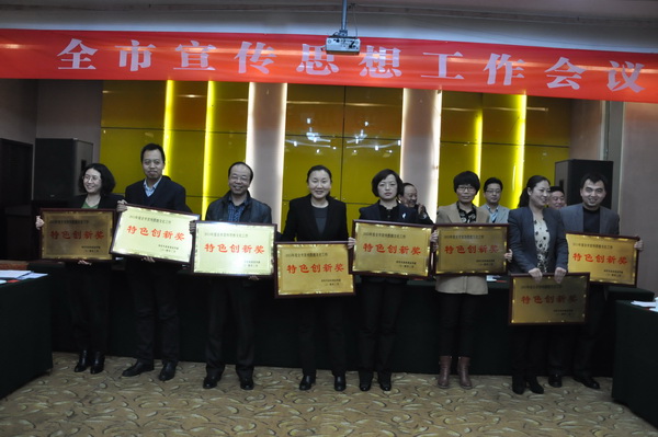 2013年,全市宣传思想文化工作在市委市政府的正确领导下,高举中国特色社会主义伟大旗帜,深入学习宣传贯彻党的十八大、十八届三中全会精神和习近平总书记系列讲话精神,紧紧围绕市委市政府中心工作,坚持团结稳定鼓劲、正面宣传为主的方针,不断深化拓展理论武装,壮大主流思想舆论,巩固社会主义核心价值体系,在创新体制机制中促进文化事业和文化产业发展,为推进全市经济社会跨越转型发展,提供了强有力的思想保证、舆论支持、精神动力和文化条件。全市宣传思想文化战线积极推进理论创新、手段创新和工作创新,宣传思想文化工作科学化水平不断提升。为总结经验,鼓励创新,经市委宣传部部长办公会议研究,决定授予秦州区、武山县、张家川县“2013年度宣传思想工作先进县区”,授予“最美天水人”评选表彰活动等13项工作“2013年度全市宣传思想文化工作特色创新奖”。