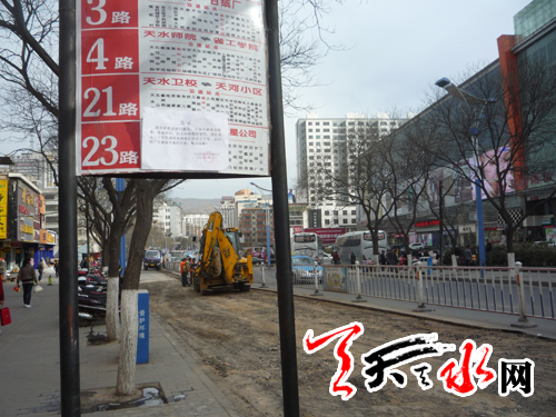 据该集团生产经营部李部长介绍,由于此次施工没有采取全封闭方式施工,所以,途经此路段的公交车运行线路暂时不变,只不过,为了配合施工以及确保公交车行车安全,凡是途经该路段曾在民生公交站停靠的公交车将从3月20日起,不再民生公交站停靠。请在该站上下车的乘客,就近选择其它站点上下车。至于在道路东侧秦州公交站停靠的公交车,将根据施工情况适时调整停靠站点。为了让乘客知晓此事,他们已经在民生公交站牌以及相关公交车内张贴了通知。