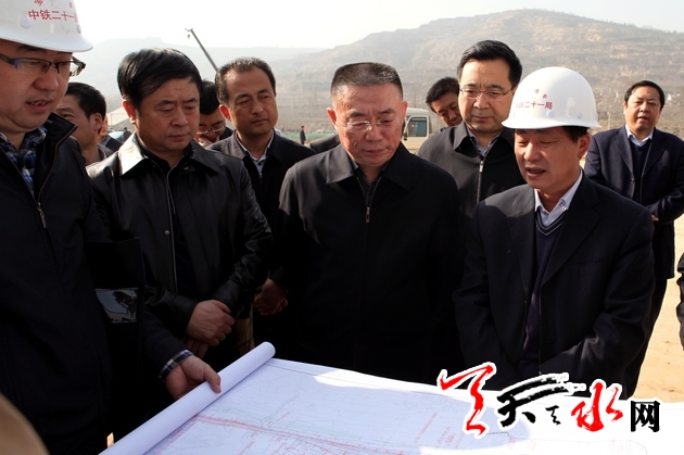 天天天水网讯(记者 孙燕芸) 3月25日,天水市委书记王锐带领市发改、商务、国土、规划、交通等部门负责人,先后深入天水商贸城、宝兰客运专线和伯阳镇曹石村,详细了解重点项目建设情况及党的群众路线教育实践活动开展情况。王锐强调,市直有关部门和麦积区要加强与项目施工单位的衔接配合,全力搞好协调保障工作,科学合理调度,确保工程质量,共同加快重点项目建设进度。