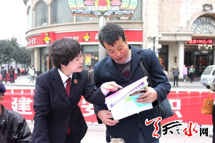天天天水网讯(通讯员杨路军)3月27日上午,麦积区2014年平安建设集中宣传活动在天水火车站广场举行。来自区检察院、公安分局、森林公安分局、天水市中西医结合医院、麦积区中医院、天水市第四人民医院、交警大队、人社局、计生局、质监局、食药监局、安监局等多家综治成员单位在这里开展平安建设集中宣传活动,营造了人人参与平安建设、共同维护治安环境的良好社会氛围。