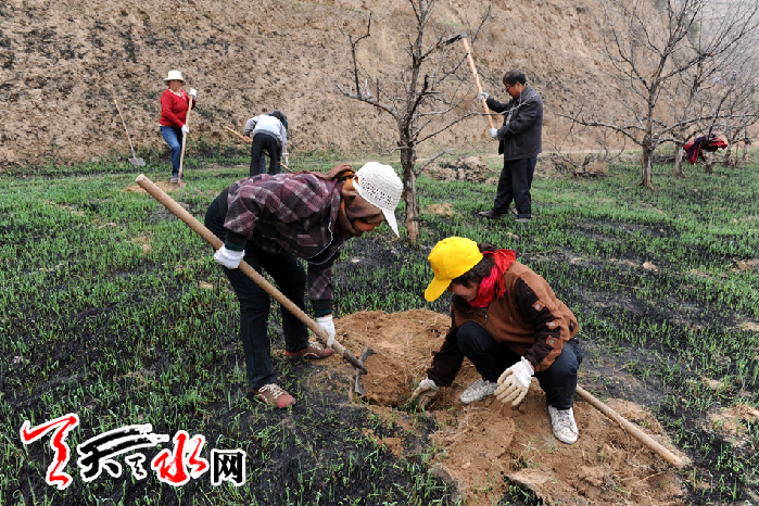 天天天水网讯(通讯员窦耀辉)卦台山下春潮涌,渭水河畔播绿忙。连日来,笔者跟随麦积区林业局负责人先后深入全区各乡镇就今春植树造林、果树建园工作进行了全面督查指导,每到一处,机械轰鸣,植树大军或装卸运转苗木、或挖坑栽植树木、或浇水培土、或覆膜保墒,处处一派热火朝天的造林建园场面。