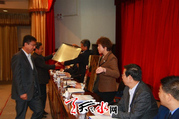 在会上,宣读了天水市人民政府关于表彰2013年度天水市人民政府质量奖获奖企业的决定,天水锻压机床(集团)有限公司等两户企业获得第一届天水市人民政府质量奖,对获得2013年度天水市人民政府质量奖的企业,天水市政府各奖励20万元。天水锻压党委书记、董事长吴辉同志上台从天水市政府副市长温利平手中接过了奖牌。