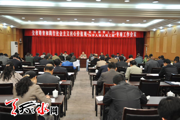 会议传达了中央和省上相关会议精神,宣读了《天水市社会主义核心价值观“24字人知人晓工程”工作方案》。