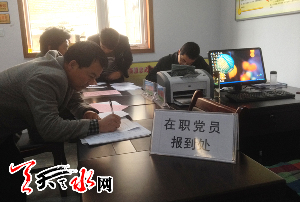 天天天水网讯(记者 周文涛 孙镇)4月9日,在职党员正在秦州区东关街道忠武巷社区报到登记。为深入推进党的群众路线教育实践活动,加强基层服务型党组织建设,建立健全党员干部直接联系服务群众长效机制,该社区紧密安排、积极开展在职党员到社区报到工作,为下一步着力构建党员“工作在单位、服务在社区、奉献双岗位”的良性机制,真正让党员在“零距离”接触群众中受教育,让群众在“点点滴滴”中看到党员作为和开展志愿服务群众活动打下了基础。
