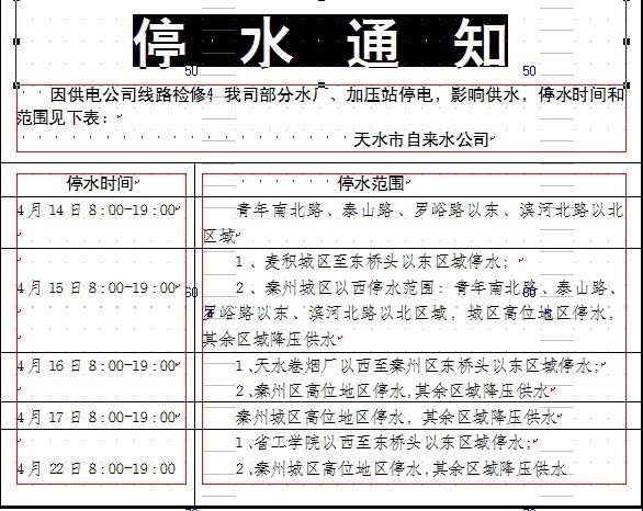 3月11日秦州区东桥头以西区域停水 市民及早储水备用