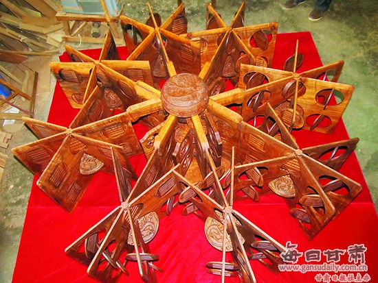 中国甘肃网4月16日讯 据兰州晨报报道(记者王兰芳) 4月14日记者了解到,天水市非遗项目“天水木雕”代表性传承人梁宝宝和徒弟朱建祥经过7年酝酿和演算,耗时110天完成的“天地开宝照,日月风水明”木雕作品近日宣布完工。作品运用“整板分解多层剔雕”工艺,立体地展示了伏羲卦象的哲学理念。