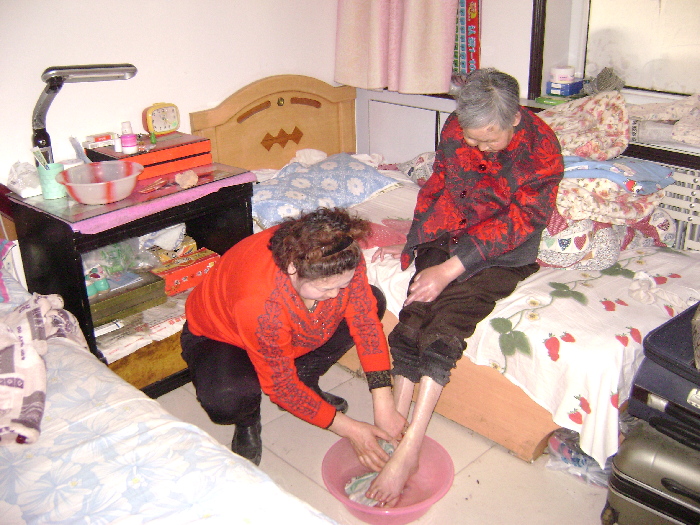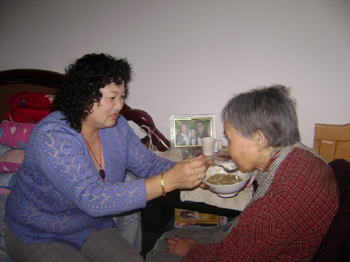 当她在家全天伺候婆婆时,才感到比上班还要苦、还要累。每天早上天刚亮,她就得起床,帮婆婆穿衣穿鞋,伺候婆婆大小便、擦屁股,给婆婆洗脸刷牙;一日三餐,都给婆婆做可口、有营养、容易消化的饭菜,并且一口一口喂着吃,饭后还要操心喂药;每天晚上,她按时给婆婆擦脸洗脚,伺候小便,服侍休息。婆婆经常大小便失禁,弄得衣裤和床上污秽不堪,但她从未嫌弃和埋怨,总是及时清洗处理。为防止婆婆得褥疮,她总是帮婆婆翻身、擦澡,给婆婆三天一小洗、一周一大洗,多年来婆婆从没有生过褥疮。