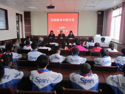 通过生动的寓言小故事使小学生们明白了不遵守规则、不遵守法律的危害,从而明确遵纪守法的重要性;用通俗易懂的语言简要介绍了《宪法》、《未成年人保护法》等法律的主要内容;通过详细解读发生在同龄人身上的三个正反案例,使同学们加强纪律意识、安全意识和自我防范、保护和应对意识。最后,法制副校长桑婷补充讲解了小学生预防不法侵害行为的六个法宝,并强调,同学们要知法懂法、遵法守法,遇事冷静、有法纪观念,好好学习、健康成长,成长为国家的栋梁。