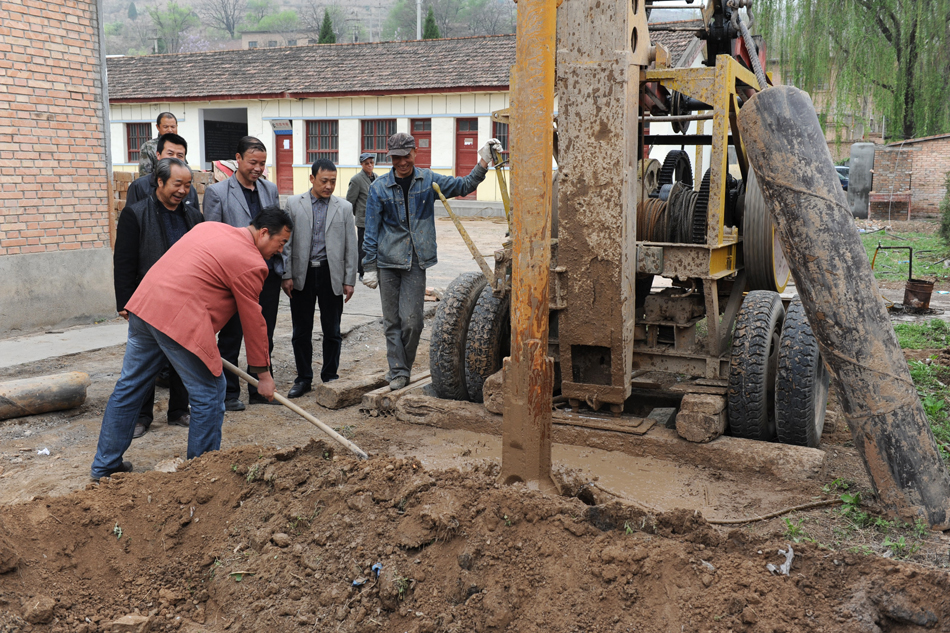 连日来,麦积区社棠镇向阳村委会院内,机械轰鸣,人畜饮水工程打井钻探工作正在有序不紊进行。
