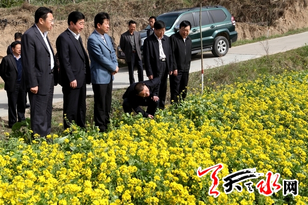 王锐一行先后来到秦州区中梁乡向阳村、麦积区花牛镇田家尧村和城郊南山花牛苹果精品示范园,深入田间地头,实地察看油菜、苹果、大樱桃等农、林作物受灾情况,详细询问所采取应对措施的效果,并就进一步做好防灾减灾和生产自救工作提出了指导意见。