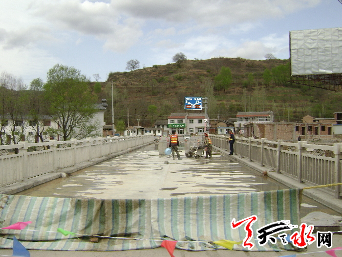 始建于1972年的徐家店桥,是我市通往陇南礼县、甘南合作的第一座桥梁,曾在1979年和2002年进行过两次加固。为确保该桥继续发挥重要作用,省公路管理局和天水局今年投资38万元,由秦州公路段于4月初对该桥进行第三次维修加固,并在桥下修筑50米的导流堤,要求7月底完成。预计提前一个月完成施工任务,6月底全面恢复通车。图为施工的徐家店桥。