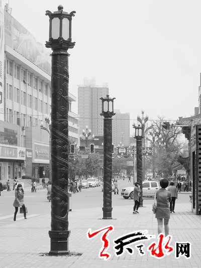 新型的龙柱灯,其外观为黑色调,外壁镌刻着龙图案,取名龙柱灯,与龙城天水以及龙城广场之名相得益彰。