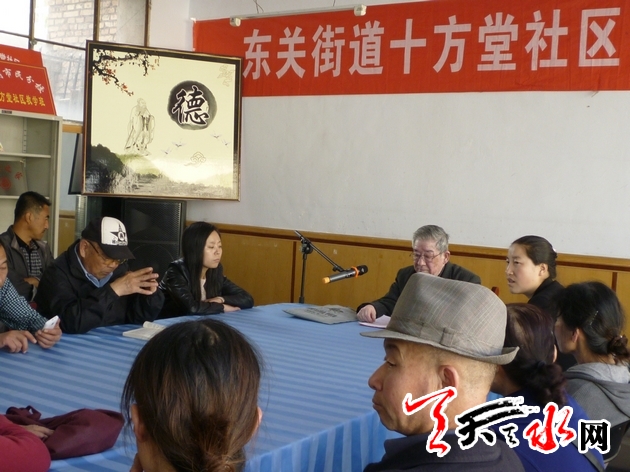 天天天水网讯(通讯员 刘丽霞) 为更好地宣扬道德精神,传递道德“正能量”, 4月29日下午,秦州区十方堂社区组织干部职工、居民群众、流动人口代表开展了“道德讲堂”活动。