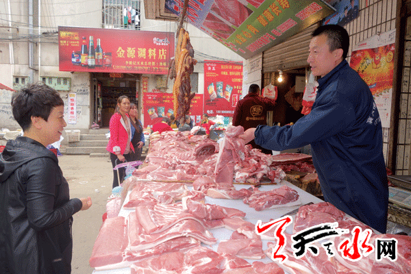 “猪肉价格每斤才8元5到9元钱,比生姜价格还要便宜,孙子爱吃肉包子,这不,我今天专门来买点,给孙子做包子吃。”4月24日上午,家住秦州区解放路的杜惠芳老人专门到秦州区商业城菜市场买肉。
