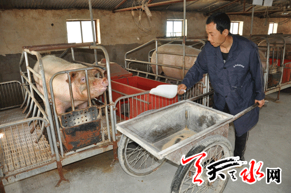 记者在天水市畜牧兽医局了解到,生猪养殖产业为我市养殖第一大产业,截至2013年年底,我市共有生猪养殖场(养殖小区)591家,猪饲养量为218.44万头。生猪饲料产量占饲料总产量的40%左右。但是根据2014年1月份的生猪存栏来看,却是达到了五年来的历史最低点。生猪价格在2014年春节期间开始下滑,出现十年来的春节首度下降。生猪价格一跌再跌,养猪业亏损严重。目前,出栏一头生猪亏损在350元左右,较去年亏损额度高出150元左右。